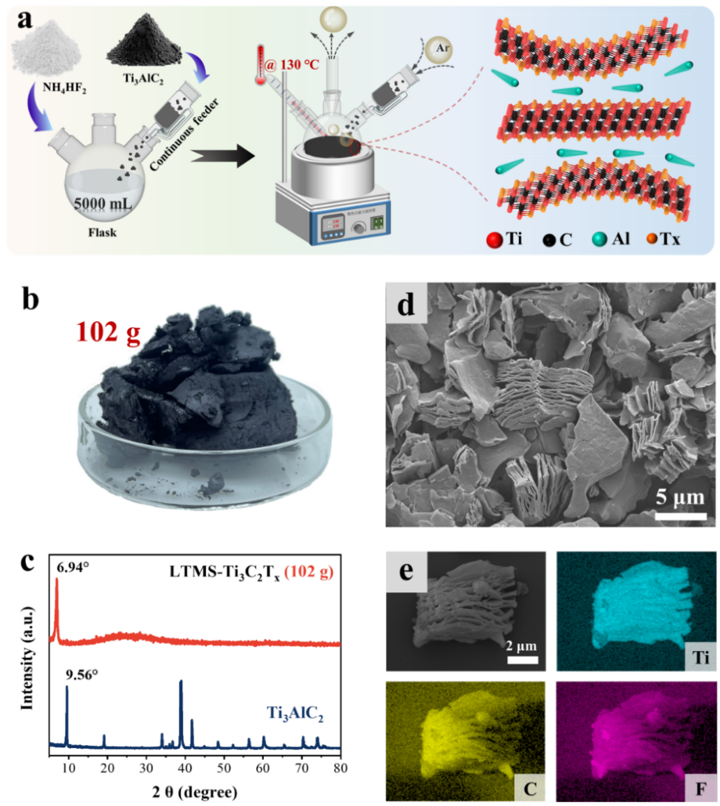 图3 LTMS方法大规模制备MXene及其产物物相表征