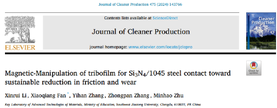 近日,西南交通大学磨蚀防护技术与理论课题组探索了磁场对摩擦膜(tribofilm)组织结构的影响,特别是通过磁场控制磨损颗粒氧化的潜力。研究中开发了一种具有纹理化表面的摩擦系统,该表面特征反映了磨损后的表面状态。结合有限元分析,深入解析了磁场在磨损表面上的分布情况,并揭示了磁场如何影响氧化层的积累与摩擦学行为之间的关系。实验结果表明,磁场不仅能促进磨损颗粒的氧化,还能通过重新排列氧化颗粒来提高摩擦膜的密度和厚度,从而减少摩擦和磨损。该研究为理解磁场下摩擦学行为的基本机制提供了新见解,并为实现高效传动润滑控制提出了新的应用前景。该工作以“Magnetic-Manipulation of tribofilm for Si3N4/1045 steel contact toward sustainable reduction in friction and wear”为题发表在《Journal of Cleaner Production》上。该研究得到国家自然科学基金委的支持。
